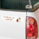 Funny bumper sticker for bird lovers with the words 'I wish my car could fly', with one owl perched and one flying off in the distance. The owls are from my original glass painting with a digital effect and the text can be customised.