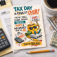 Celebrate the sweet relief of finishing your taxes with this humorous Tax Day postcard. Featuring playful illustrations of a happy coffee mug, tax forms, calculator, and money, the design captures that satisfying moment when everything is finally filed and paid. The bright colors and cheerful graphics add a lighthearted touch to the often stressful tax season. Perfect for accountants, taxpayers, coworkers, or anyone who deserves a break after filing. Send it as a fun reminder that once the paperwork is done, it’s time to relax with coffee, naps, and a well-earned day off.