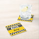 Fun taxi driver retirement gift coaster. Customise the gift by adding the recipient's name (or message of your choice). Bright yellow coaster printed with an OFF DUTY taxi sign and black and white chequerboard strip.