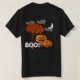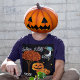 Easy t-shirt Halloween or Harvest Party Costume for the Parent. Great for your Church Party! Cute Pumpkin Family standing by a Tree with Orange Autumn Leaves on a with a black t-shirt. White moon and clouds with a Friendly Smiling Halloween Pumpkin Head Family with a Friendly BOO! With Funny Eyes On Top of each Big Letter!