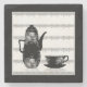 Tea coffee pot cup black white illustration retro stone coaster