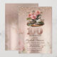 Tea Cup Flowers Glitter Rose Gold 100th Invitation