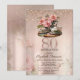 Tea Cup Flowers Glitter Rose Gold 80th Birthday Invitation