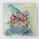 Tea cup flowers square wall clock