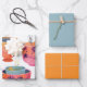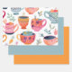 This cute set of wrapping sheets features an illustration of tea cups and leaves and two solid colours taken from the illustration.