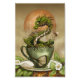 This whimsical dragon is part of a series of little dragons that would live in a garden. Hiding among tea leaves this dragon has taken on some of the colours and appearances. Finding a tea cup home and a bee adds a little honey to the tea.