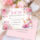 Tea For Three Pink Floral 3rd Birthday Rsvp Card