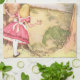 16” x 24” kitchen towel with a vintage Alice in Wonderland image of Alice peering from behind a tree at a Mad Hatter's tea party in progress with the Mad Hatter, March Hare, and Dormouse, by artist A. H. Watson (1939). See the entire Wonderland Kitchen Towel collection in the FOOD/BEV | Linens section.
