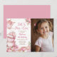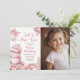 Tea Party Birthday Girl Pink & Gold Floral Photo Invitation
