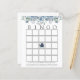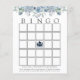 Bridal shower bingo card featuring a watercolor cascade of blue florals and a blue teapot. A fun way to interact with shower guests while the bride-to-be opens her gifts.