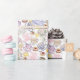Tea cup and cookies designed roll of wrapping paper. Hand painted watercolor elements of tea cookies, tea bags, lemon slices and teaspoons along with a variety of tea cups make this the perfect paper for tea parties.