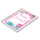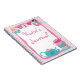 This notebook is bordered with a teal green teapot sitting next to a stack of teal green and pink teacups on the bottom. On top there are two pretty little girls adorned in dresses sitting in a teacup. Three butterflies are at the centre of the top. Customise the text to make it your own.