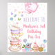 Welcome your party guests with an adorable personalised sign. Frame the sign and display it on a table near the entrance or mount the poster on foam and display it outside on an easel. This adorable design features a watercolor tea cups with pink floral and faux gold foil embellishments.