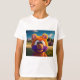 The t-shirt feels and looks great quality, a good thick cotton. It will be a little big for my son, but that means he will be able to wear it and not out grow it too soon. The print was as described on the order when personalised. True size, shape and colour T-shirt- thanks.