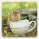Cute little chipmunk enjoys her tea from a white china teacup - totally customisable for you to personalise as you please!