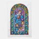 The original artwork is illustrated in water color and colored pencil, featuring a stained glass design after Burne Jones.