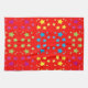 Tea towel with coloured stars. The bright red background can be changed to any colour