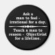 A play on the famous "Teach a man to fish..." parable. "Ask a man to feel – irrational for a day. Teach a man to reason – Objectivist for a lifetime”.