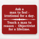 A play on the famous "Teach a man to fish..." parable. "Ask a man to feel – irrational for a day. Teach a man to reason – Objectivist for a lifetime”.