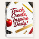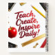 Inspirational teacher quote design with apple and pencil on transparent background.