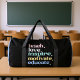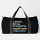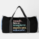 This black and blue duffle bag celebrates the multifaceted role of an educator, featuring the powerful words "teach. love. inspire. motivate. educate." in a charming, multi-coloured font. It's an ideal and inspiring gift for teachers, mentors, and anyone dedicated to shaping minds and hearts. Edit colour of the bag caps and body in the Design tool to your favored colours.