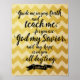 Scripture reads: "Guide me in your truth and teach me, for you are God my Saviour and my hope is in you all day long. - Psalm 25:5" This beautiful print features black typography on top of a gold chevron design. Also look for other colour choices and background designs.