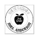 This self inking stamp is designed for any teacher to use for her classroom books and supplies. The design is accented with a graphic of an apple. Custom text allows you to personalise with the teacher's name and grade.