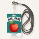 Teacher student hall pass with green background a shiny red apple. Comes with lanyard attachment. Great for elementary school and middle school classrooms. Customise the teacher and class information.