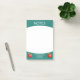 Teacher student sticky notes with teal green background a shiny red apple. Great for elementary school and middle school classrooms. Customise the teacher and class information.