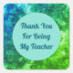 The background of this teacher appreciation sticker features a swirled green and blue abstract pattern that appears marbled. A solid light blue circle is centred on this square sticker and provides the background for your words of appreciation. "Thank You For Being My Teacher" can easily be customised to suit your needs.