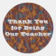 This unique and inexpensive teacher appreciation sticker features a background of rich gold and blue colours. The colours are swirled together in a tie-dye pattern and provides the basis for your words of appreciation. "Thank you for Being Our Teacher" appears in the centre of this sticker and can easily be customised to suit your needs.
