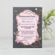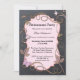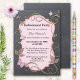 Elegant retirement party invitation with pink on blackboard and rose gold metallic swirls.