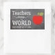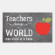"Teacher change the world one child at a time" thoughtful white typography script quote and red apple on blackboard background. It could make a nice thank you gift to your best teacher on teacher appreciation day.