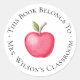 Teacher Classroom Bookplate with Apple Classic Round Sticker