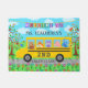 This cute welcome sign for the classroom floor is perfect for a teacher's preschool or elementary school class. It shows a bunch of cuddly animals riding the school bus. The bear is driving, the fox is writing in its notebook, the owl is staring out the window, the pig is being a well-behaved student, and the bunny rabbit is waving a flag in the back seat. Around the bus, it's a happy day with flowers, clouds, trees, birds, and a beautiful welcome banner. Use the easy templates to add your text. "Customise" to make more detailed changes. Go back to school in style with this vibrant, pretty personalised design.