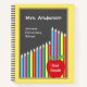 This spiral notebook features a chalkboard background accented with coloured pencils and is accented with a whimsical red apple. Custom text allows you to add teachers name, school and grade level. It's a perfect item for any teacher.