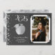 Celebrate the new teacher graduate from education school with this silver and Grey teacher apple with graduation hat, graduation announcement! Elegant with a vintage photo border and silver confetti accents! Perfect for anyone graduating from college and becoming a teacher!