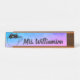 Cute cat peaking out off a tea cup or coffee mug colourful desk name plate monogrammed with your name, teachers name, stylists name or other professionals name. Perfect for sitting on your work desk,classroom desk,work station or reception area. Chic and stylish blue and purple watercolor background with line art drawing.