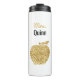 Teacher Faux Sequin Gold Apple Personalised Pretty Hot Beverage Tumbler. Pretty gold apple silhouette sparkly glitter faux sequin design. Personalised with your favourite teachers name. Fun, stylish and modern end of the year teacher gift. www.SamAnnDesigns.com