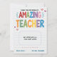 Say thank you in a bright and joyful way with this adorable "Amazing Teacher" appreciation card! Featuring colourful rainbow letters on a notebook-style background, this flat holiday card is perfect for the end of the school year, Teacher Appreciation Week, or just because.