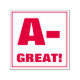 This stamp features the letter "A-" and the word "GREAT!". It could be used by teachers, educators or teaching assistants when giving a grade while marking student assignments, quizzes, projects, tests, exams, papers, and other academic works.