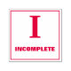 This stamp features the letter "I" and the word "INCOMPLETE". It could be used by teachers, educators or teaching assistants when giving a grade while marking student assignments, quizzes, projects, tests, exams, papers, and other academic works.