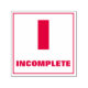 This stamp features the letter "I" and the word "INCOMPLETE". It could be used by teachers, educators or teaching assistants when giving a grade while marking student assignments, quizzes, projects, tests, exams, papers, and other academic works.