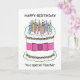 A large cartoon cake, decorated and covered in brightly coloured candles. The words 'Happy Birthday to a special Teacher' accompany the image.