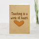 Here is a thank you card for that special teacher! It features the text "Teaching is a work of heart" with a cinnamon orange coloured heart below it. The image and text are placed on a pretty cracked brown and tan pattern, with subtle swirl embellishments in green, tangerine, and tan at two corners. The inside has a text field for you to customise. *Thanks to Real Deal Clipart for the clipart used to create this design.