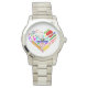 Heart shape with the word "teacher' in the centre with a ruler, paper clips, an apple, ABC, hearts, and a pencil making the border of the heart. Within the heart atre crayons, A+, and hearts.