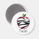A magnet for teachers featuring an illustration of a black and white zebra print apple with pink trim. Customisable text underneath reads "Teacher." Look for other zebra print apple items in the "Apples" category of The Pink Schoolhouse store.