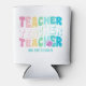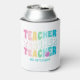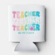 Teacher Modern Rainbow Colours Personalised Name Can Coolers features the text "Teacher" in modern rainbow colour repeat script typography with your custom personalised name below. Perfect for your favourite teacher for teacher appreciation, birthday, Christmas, holidays and more. Designed by Evco Studio www.zazzle.com/store/evcostudio