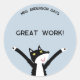 Funny cat Great Work teacher encouragement stickers to let your students know what a great job they are doing at school. Change the teacher's name and encouragement message to personalise. Original art by Nic Squirrell.