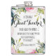 Well made flask, a little better than I had expected. Flask came in clear plastic box which gave it a nice presentation when I took it out of the zazzle packaging. Image is not printed on flask but on sticker. Don't know how this will hold up I haven't used it yet. This would make a Great gift! I plan to purchase more for friends! Cheers. I thought a little brighter than computer. Very crisp, writing wasn't